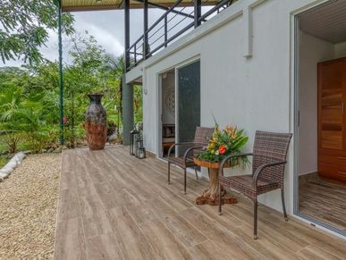 There are comfortable places to relax inside and out, whether on the sofa or on the patio shared with the Flower of Life room.